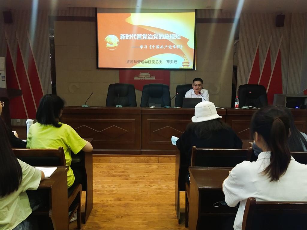 党总支书记苟安经领学《中国共产党章程》主题党课,他结合自己学习党章的体会和工作实际,从党章的概述、发展历程、总纲部分、条文部分和如何学习践行党章,争做合格党员等五个方面深刻阐述了学习党章、遵守党章、贯彻党章、维护党章的重要意义。