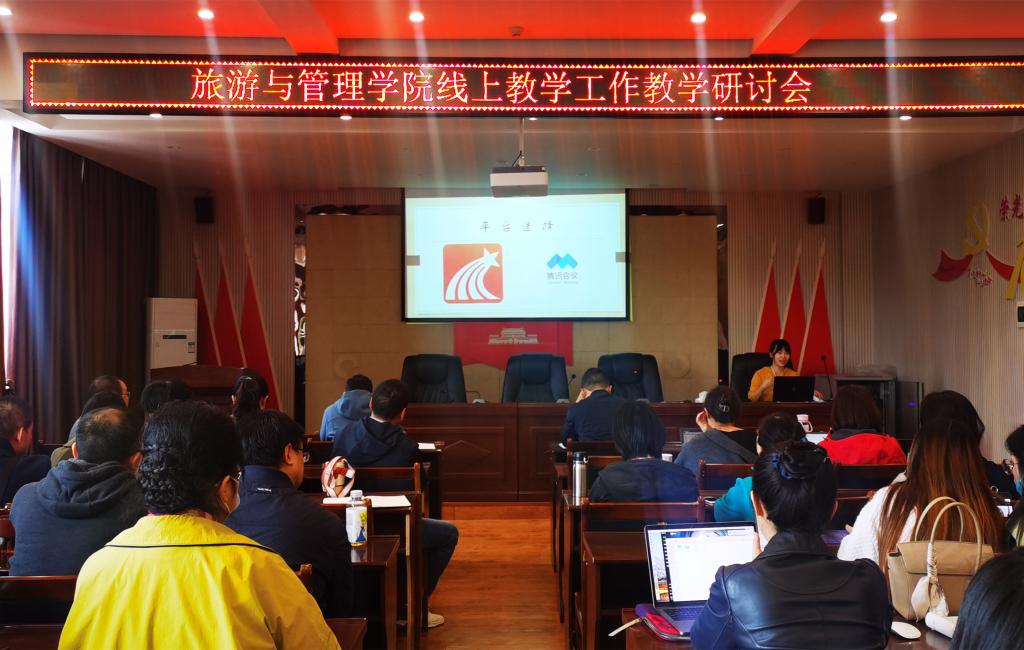 应用英语教研室主任勾淼从线上教学理念、教学效果保障、授课平台选择、思政课程建设、员工听课效率等方面分享了线上教学的创新举措和教学经验。酒店管理与数字化运营教研室主任王雪从开课通知、章节内容、资料准备、预约签到等课前活动,PPT制作、短小的视频资料、课堂讲授等课中活动,作业、观看视频资料、阅读补充资料、统计课堂活动等课后活动等方面,分享全过程线上教学经验。(吴俊)