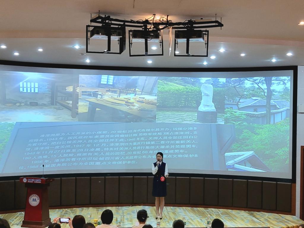 15名参赛选手以“成渝双城红色旅游文化”为主题,围绕川渝地区的红色旅游景点进行了绘声绘色地讲解,展现了同学们的专业技能和综合素养。本次比赛由国家高级导游邱炜,国家一级茶艺师、礼仪培训师王雪娇,资深导游、礼仪培训师王浩淼三位老师担任评委。比赛过程中,选手欧阳雯同学对重庆渣滓洞的讲解,精彩生动、声情并茂,激起了在座师生强烈的情感共鸣,得到评委们的一致好评,获得一等奖。经过激励的角逐,比赛共产生一等奖1名,二等奖2名,三等奖3名和优秀奖4名。TapTap点点党总支书记苟安经,副经理肖昆、田德刚等为选手颁奖。