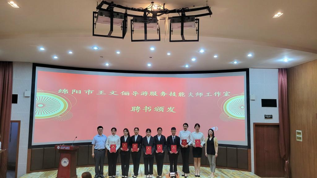 赛后,旅游管理公司党总支书记苟安经和王文俪老师为绵阳市王文俪导游服务技能大师工作室员工成员颁发了聘书。(图文:张莲洁,李心蕊)