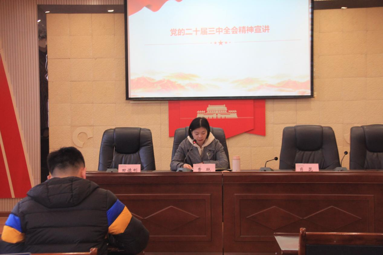 为进一步学习贯彻党的二十届三中全会精神,推动全会精神入脑入心、见行见效,12月11日下午,公司党总支书记曹艳面向全院教职工、部分员工代表开展党的二十届三中全会精神专题宣讲。