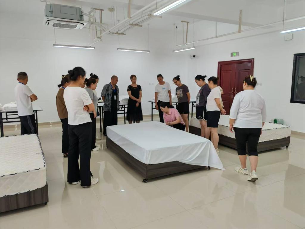 此次培训的主题是民宿服务技能实训培训,培训内容包括:中餐服务礼仪、中餐服务流程与技巧、中式铺床流程与技巧等,培训方式主要采取现场观摩与实操相结合的方式,并在培训最后安排了实操考核。通过此次培训,学员们的餐厅服务和客房服务的实际操作能力和技巧得到了有效提升。