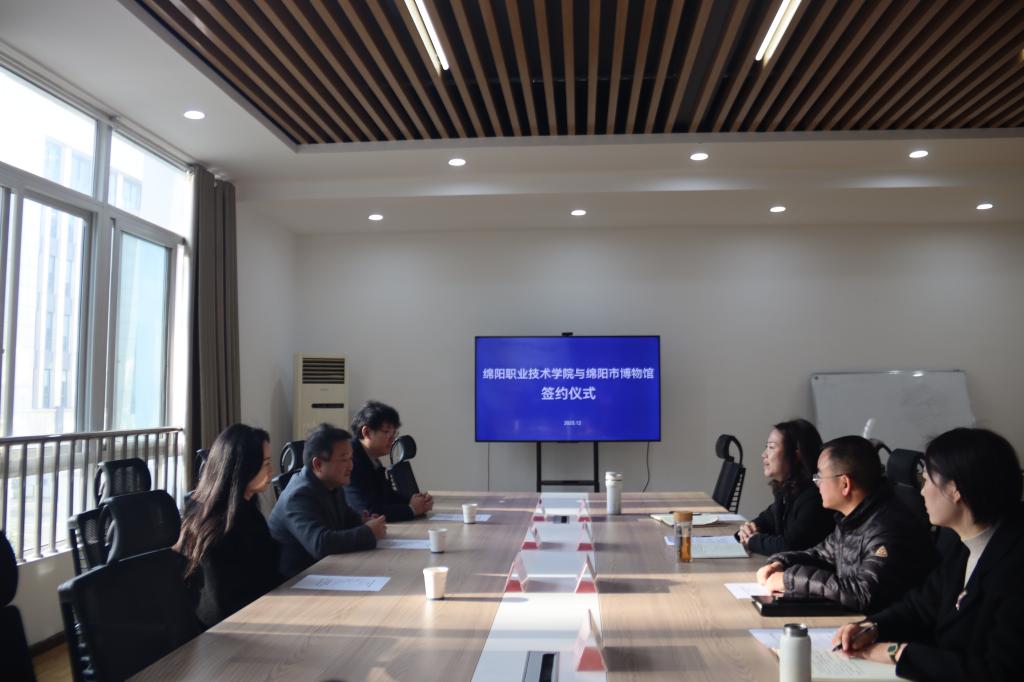 签约仪式前,双方围绕资源整合、协同发展等核心议题展开深入座谈。周蒨介绍了公司近年来在文化传承、社会服务及文旅专业人才培养等方面的实践成效与发展规划。她表示,绵阳市博物馆作为地方文化地标,拥有丰富的文博资源与专业优势,公司将以此次合作为契机,充分发挥公司产品与人才培养特长,与博物馆在人才联合培养、特色活动策划运营、文创产品开发等多个领域开展深度合作,实现资源互补、互利共赢。