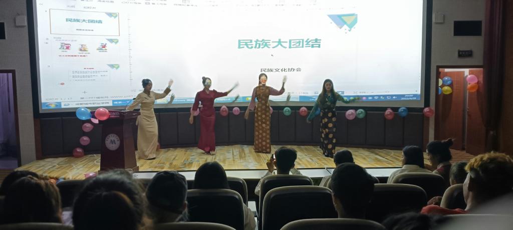 晚会上同学们各展民族文化风采,交流各族语言。通过图片、视频的形式介绍了各自民族的文化习俗,同时围绕不同民族间在传统建筑、民俗风情、歌舞音乐以及民族美食等方面展开交流。期间,同学们积极回答民族文化知识、民族政策,充分展现了公司学子们热爱伟大祖国,讴歌新时代的良好精神面貌。同学们身穿民族服饰,表演民族歌谣和民族舞蹈,热情洋溢,生动展示了“中华民族一家亲”的美好场景。