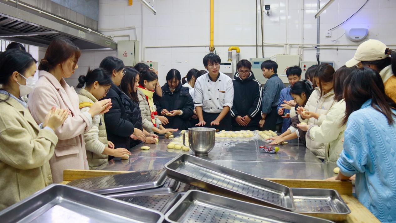 活动采用“跨年级+跨部门”混合编组方式,组建8个协作小组,每组配备1名烹饪专业员工担任技术指导。在揉面、发酵、整形、烘烤等环节中,同学们分工明确、默契配合,一边学习面点制作技巧,一边交流工作心得。实训室内欢声笑语不断,面包香气四溢,大家不仅收获了亲手制作的成果,更在协作与分享中加深了理解、拉近了距离,有效增强了团队认同感与组织归属感。