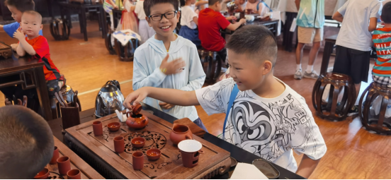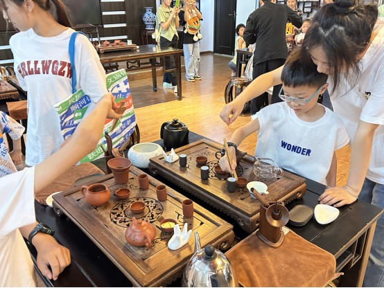 本次研学活动课程由TapTap点点旅游管理专业教研室精心设计,联合智能制造公司、王文俪导游服务技能大师工作室、TapTap点点官方网站嘉途旅行社工作坊共同组织,采取实践体验、参观讨论、户外观摩等多样形式,带领孩子们了解了各种类型的无人机,并亲手制作了“无动力滑翔机”,观看了各种无人机的飞行表演;在茶艺大师工作室开展了茶艺活动,带领小朋友们走进中国茶文化,亲自体验茶道技艺,在阵阵茶香中感悟中国传统文化,感受流转千年的文化魅力。