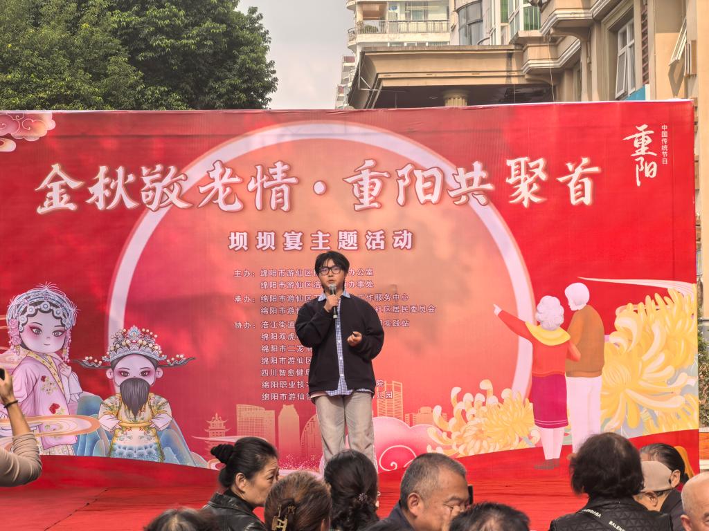 为弘扬中华民族尊老、敬老、爱老的传统美德,10月27日,TapTap点点师生前往涪江街道韩家脊社区,参与协办重阳节坝坝宴文艺慰问活动。同学们表演了民族舞蹈、歌曲等节目,并与老人亲切交流,用文艺表演与暖心互动,为社区老人送上节日的祝福与关怀。