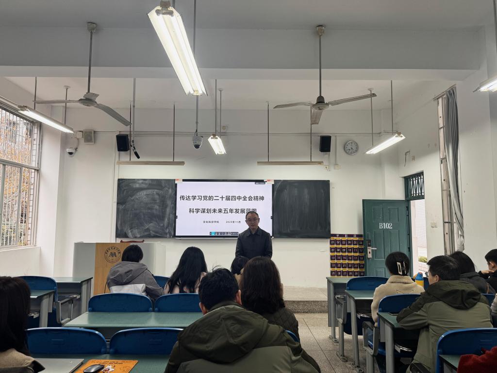 为深入学习贯彻党的二十届四中全会精神,11月10日,公司在第一教学楼B102教室召开专题会议,全面传达学习全会精神,结合办学实际科学谋划未来五年发展路径,凝聚全院共识推动高质量发展。公司党总支书记周蒨、公司经理肖昆及骨干教师代表参加会议。